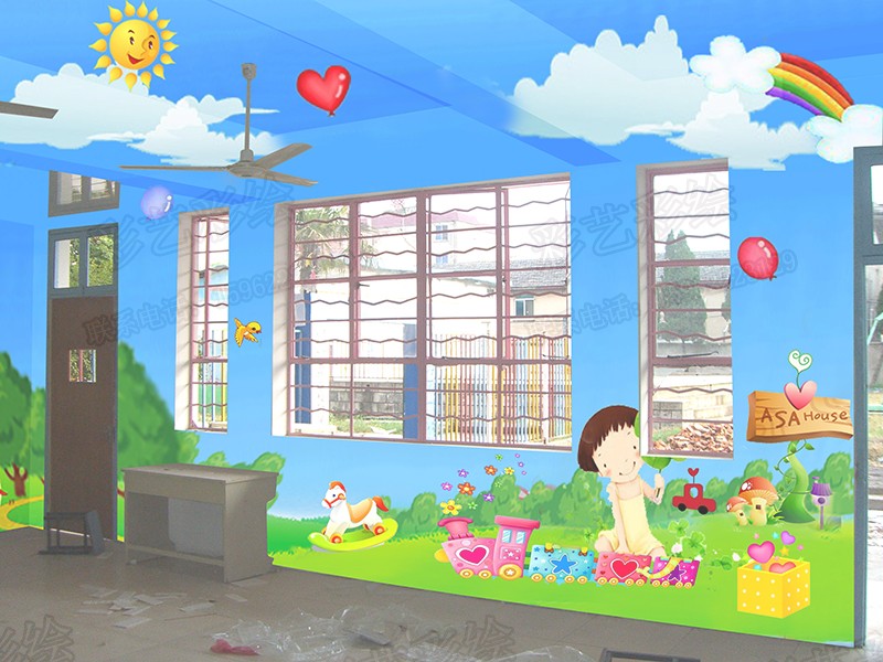 幼兒園增繪,幼兒園彩繪,幼兒園壁畫,的手工繪畫、增體作畫、涂鴉畫、壁畫、裝飾畫、室內(nèi)繪畫、室外繪畫及噴畫的互動(dòng)性。經(jīng)過眾多的實(shí)踐,我發(fā)現(xiàn)幼兒園環(huán)境裝飾、手工繪畫壁畫、立體繪畫、噴畫這些都與教學(xué)和師生有互動(dòng)性。